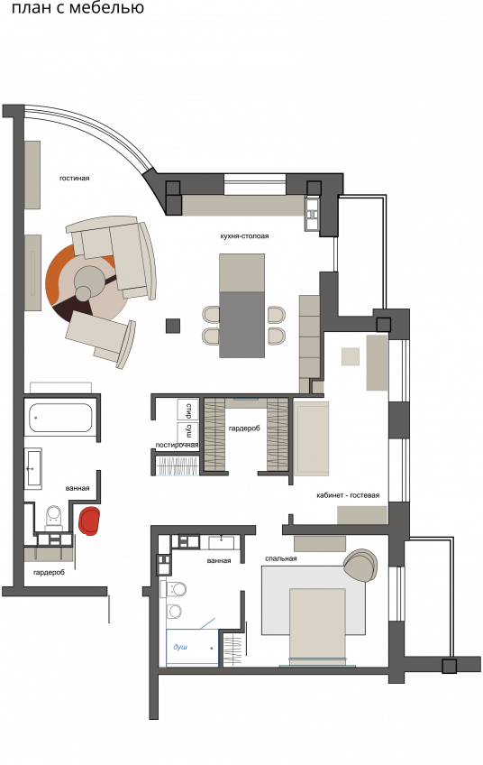 Заказчик обратился к дизайнерам Анне и Станиславу Макеевым с просьбой сделать нетривиальное пространство в его новой городской квартире.